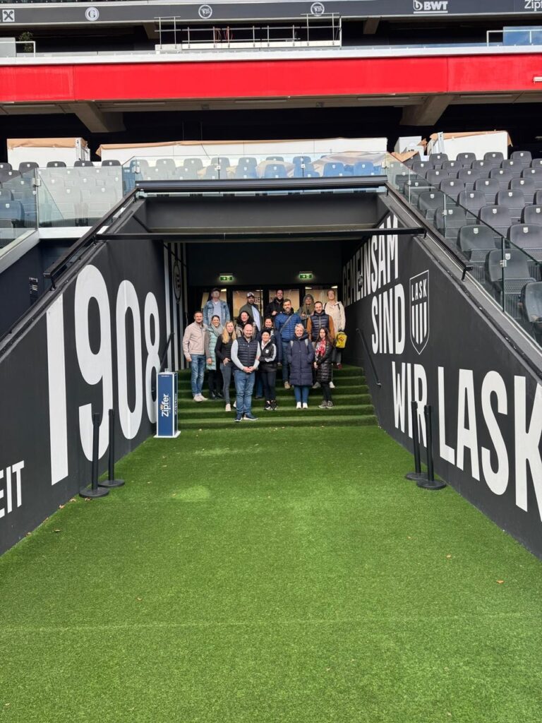 Am 30. Oktober organisierten wir eine Herbstferienaktion, bei der mehr als 40 Kinder und Erwachsene einen Ausflug in die Raiffeisenarena – der Heimat des LASK machten.